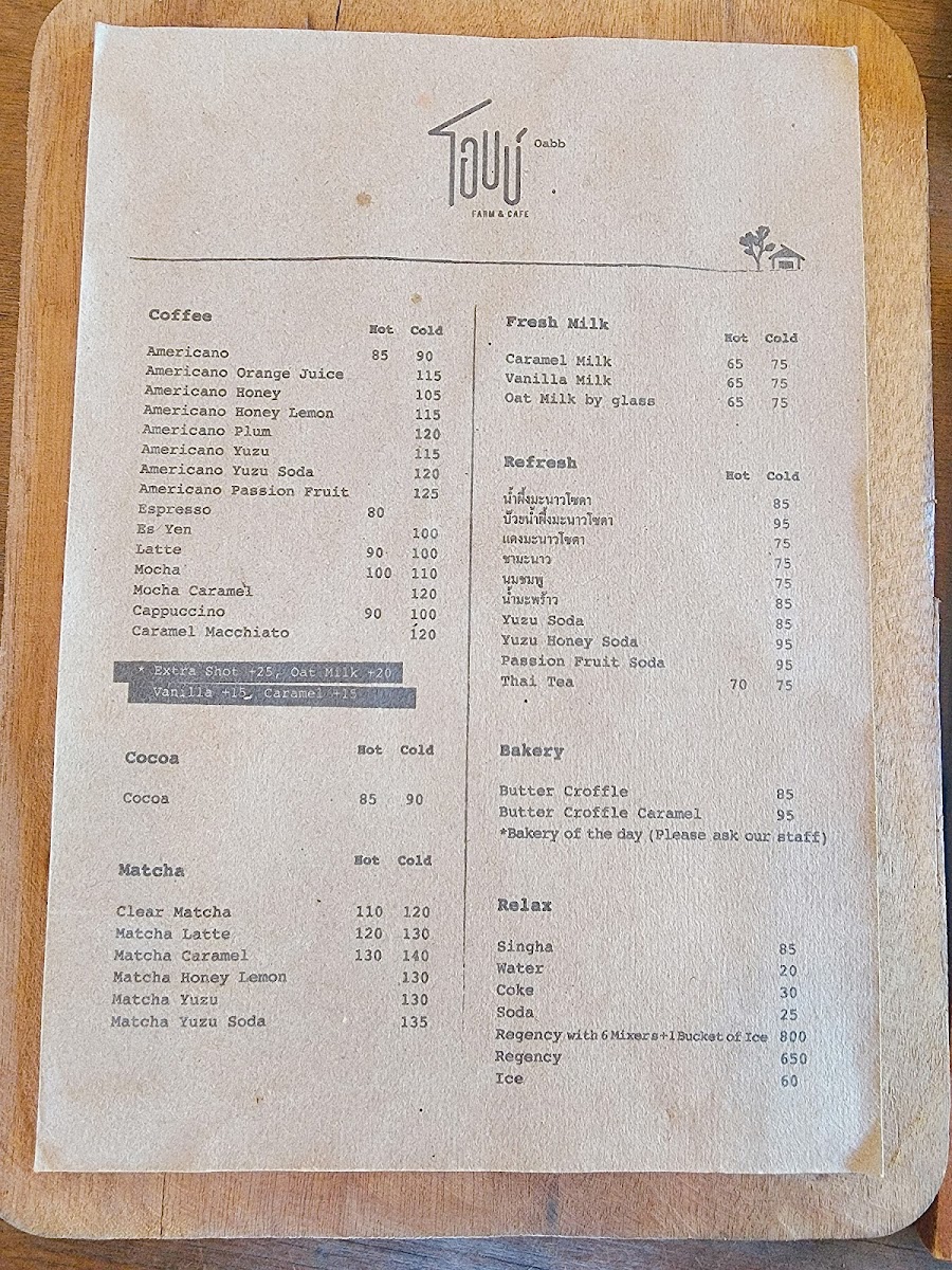 โอบบ์ ฟาร์ม แอนด์ คาเฟ่ ( Oabb Farm & Cafe ) Menu
